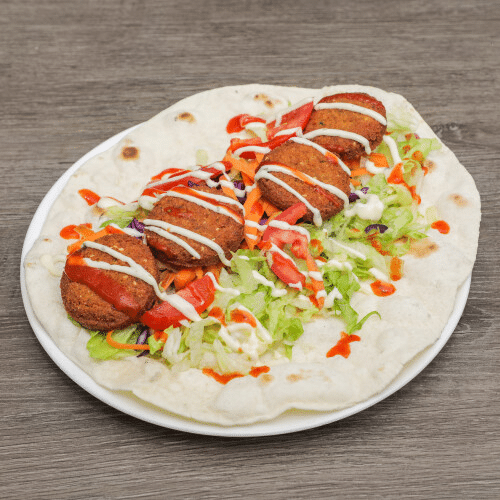 Onze wraps bevatten verse salade en onze romige sauzen (knoflooksaus en sambal)
